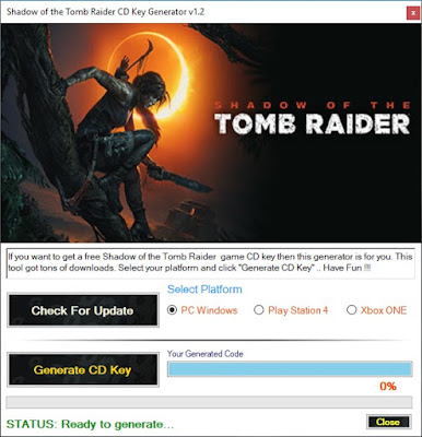 Download key generator and get your own product key for TOTALLY FREE. Our key generator will provide you the power to generate an official cd key for Shadow of the Tomb Raider. With our technique, you will have a cd key for just a few seconds, with simply a few clicks. To enjoy this awesome tool you only have to download it from the button listed above.